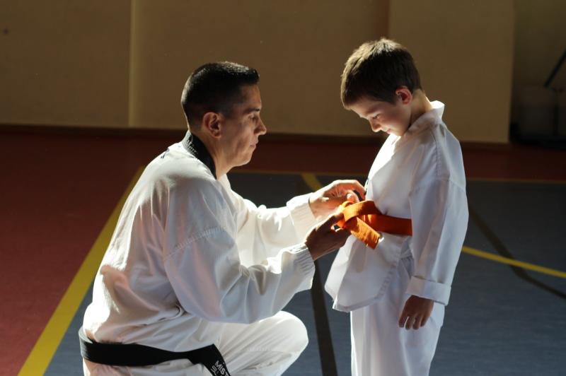 - dieci gradi “inferiori”, detti geup: si distinguono con cinture di diverso colore; inizia dal decimo geup (cintura bianca) avanzando progressivamente verso il primo geup (cintura rossa-nera).